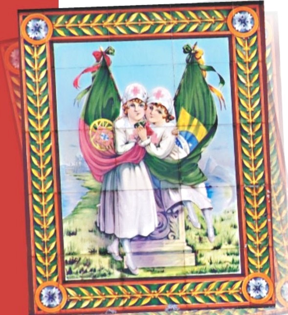 A imagem de capa do livro (abaixo) é descrita como um painel de azulejos de alegoria à amizade luso-brasileira; encontra-se na fachada de uma casa em Pelotas. Na Rua Barão de Santa Tecla, proximidades da Avenida Bento Gonçalves, algumas residências apresentam adornos especiais nas fachadas (veja nota).