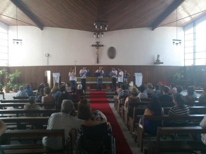 O público foi escasso nesta igreja, mas desfrutou ao máximo da música, como informa a reportagem da TVE de Porto Alegre (vídeo acima). O mesmo quinteto se apresentou no Hospital Espírita, no Expresso Embaixador e na Igreja São José, sempre de acordo ao programa.