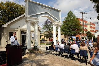 - o destaque à Academia fica ainda mais evidenciado pela "assinatura" da presidente como autora do pórtico (na placa da direita) e pelo uso do lema em latim (sem clara relação com Pelotas),