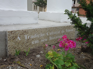 - a da esquerda diz "Á Tradição Cultural de Pelotas em seu Bicentenário" (com acento agudo no A), como se vê na foto (dir.);