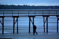 As ondas que habitualmente vêm à orla já mostravam a fuga das águas, como se saíssem da terra em direção ao mar. Essa evasão permitiu que alguém caminhasse por baixo das madeiras do trapiche (